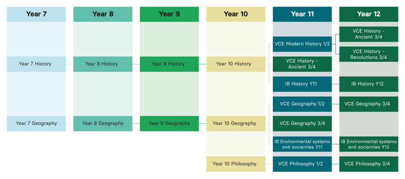 In History and Geography, students explore the processes that have shaped and continue to shape different societies and cultures, appreciate the common humanity shared across time and distance, and evaluate how humans have faced and continue to face different challenges.